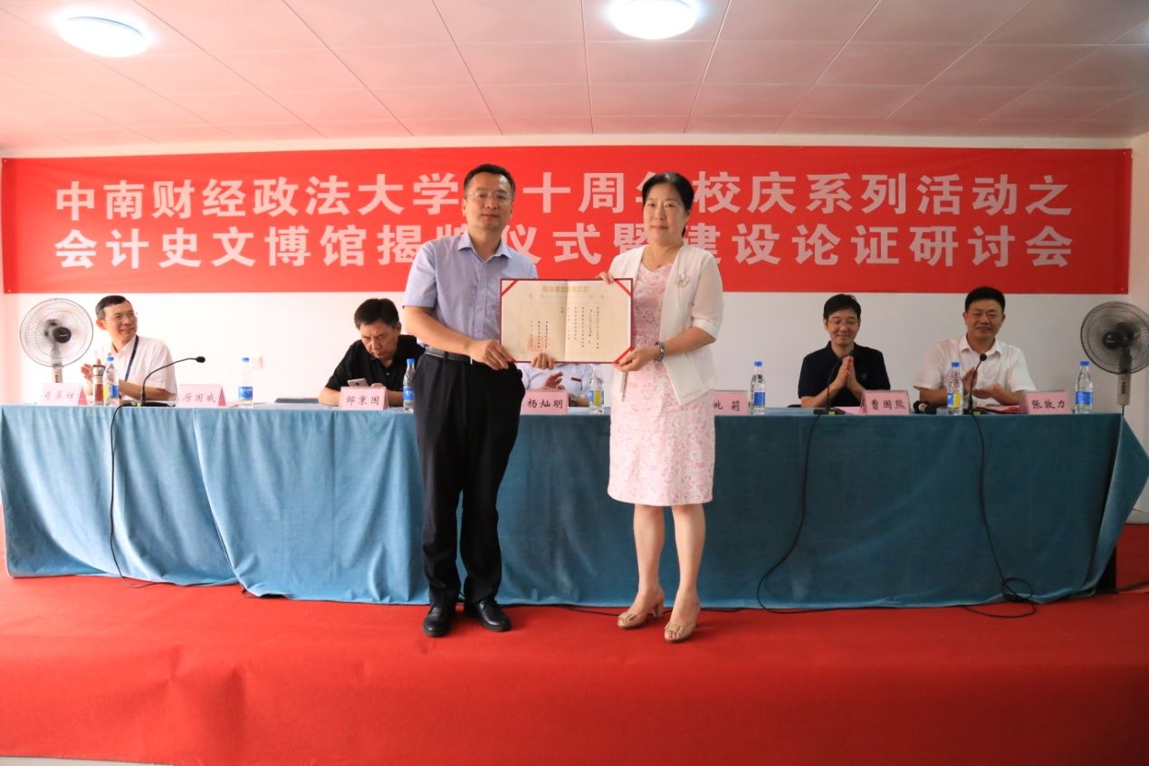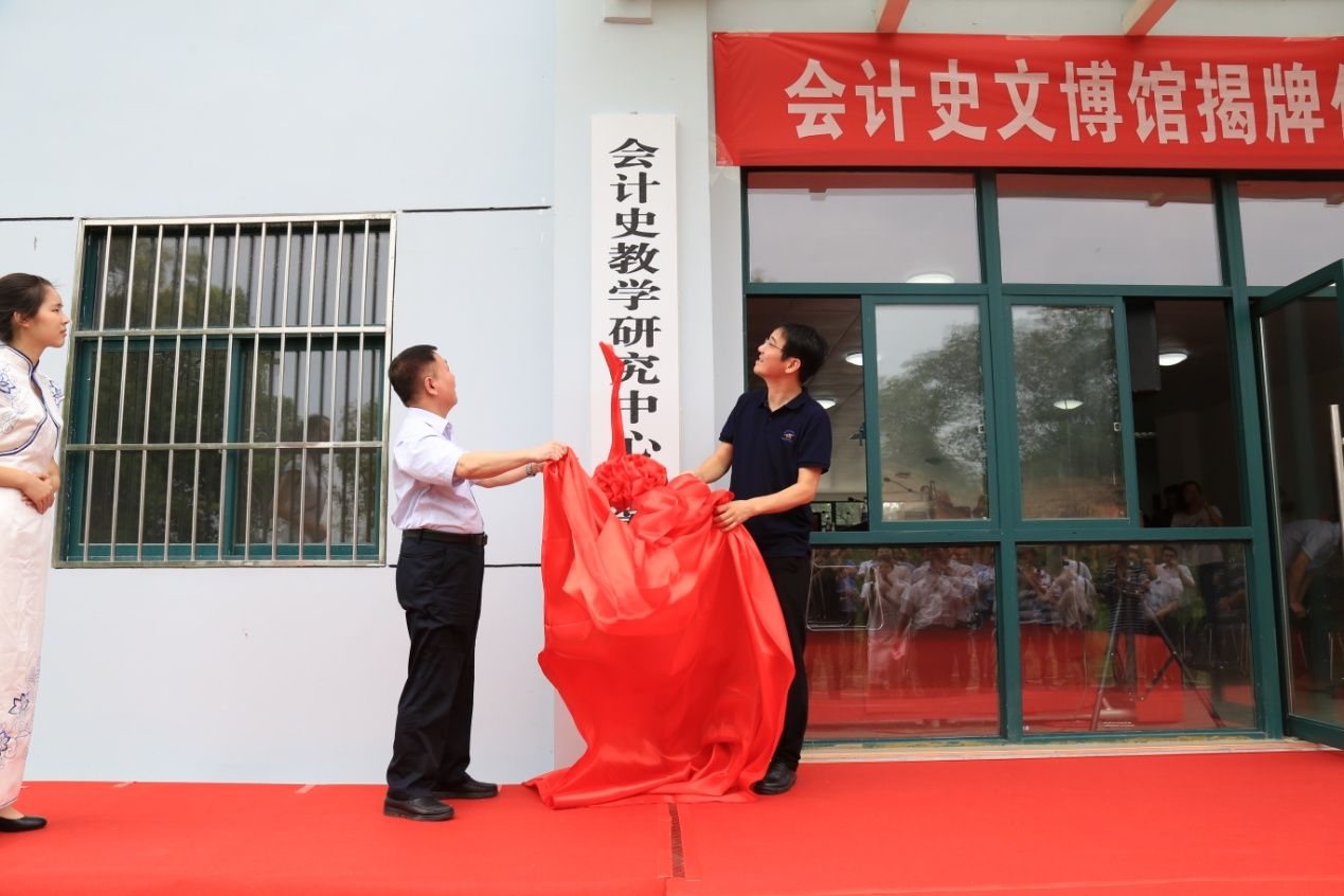 会计史文博馆的筹建离不开校领导的指导与关怀,更离不开所有工作人员的努力,会议最后进入揭牌环节。该项目是会计史教学研究中心、会计史文博馆、会计史研究院三位一体的工程,分别由杨灿明校长、曹国熊先生为会计史教学研究中心揭牌,姚莉副校长、肖翠祥书记为会计史文博馆揭牌,邹秉国校长助理、厉国威副院长为会计史研究院揭牌。