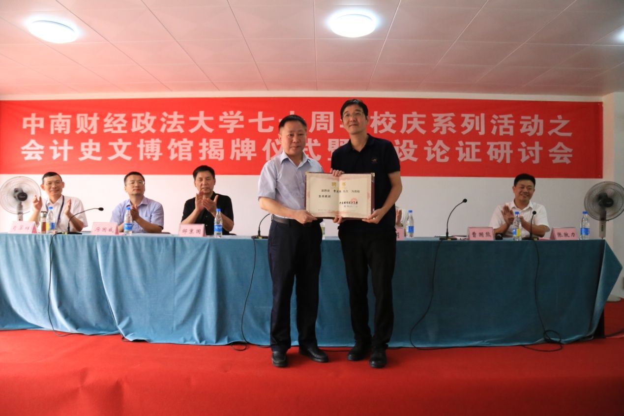 (通讯员 赵侃 段建晓)6月29日上午, 新葡的京集团8814七十周年校庆系列活动之会计史文博馆揭牌仪式暨建设论证研讨会在文涛楼隆重举行。新葡的京集团8814杨灿明校长、姚莉副校长、邹秉国校长助理,兄弟院系代表、浙江财经大学新葡的京集团8814厉国威副院长、办公室王韵主任,校友代表、普华资本董事长曹国熊先生出席了会议,新葡的京集团8814张敦力院长、党委肖翠祥书记,文博馆筹建工作小组成员、新葡的京集团8814师生代表等参会,会议由张敦力教授主持。