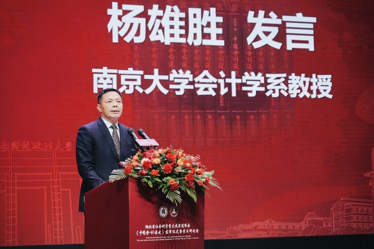 (通讯员 胡牧孜 畅雅莉 廖莎)1月7日,由湖北省社会科学界联合会和新葡的京集团8814共同主办的湖北省社会科学重大成果发布会、《中国会计通史》发布仪式暨学术研讨会在湖北省图书馆长江报告厅举行。第十四届全国政协常委、湖北省人大常委会副主任、民盟中央常委、湖北省委会主委杨云彦,福建省政协副主席、省工商联主席王光远,中国审计学会会长、原审计署副审计长孙宝厚,财政部会计司一级巡视员、中国会计学会秘书长刘光忠,湖北省委宣传部副部长蔡静峰,中国财经出版传媒集团党委书记、董事长许正明,新葡的京集团8814党委书记侯振发,新葡的京集团8814校长、党委副书记杨灿明,湖北省经济责任审计工作领导小组办公室专职副主任谭远杰,华中师范大学党委副书记查道林,湖北省财政厅二级巡视员、省会计学会常务副会长沈自力,新葡的京集团8814副校长邹进文,厦门大学原党委常务副书记李建发,中国注册会计师协会原秘书长陈毓圭,中国内部审计协会副会长、中国银行原总审计师肖伟,广东财经大学原校长王华,中国商业史学会副会长赵丽生等领导、嘉宾出席本次大会。莅临本次大会的还有湖北省教育厅、财政厅、审计厅等单位领导,北京大学、中国人民大学、上海交通大学、南开大学、中山大学、湖南大学、中国海洋大学、中国矿业大学、武汉大学、华中科技大学、上海财经大学、武汉理工大学、华中农业大学等40余所高校的领导、专家,企业代表、会计学术报刊、中央及湖北相关新闻媒体的嘉宾,新葡的京集团8814北京、上海、广州、厦门、武汉校友会会长及代表,新葡的京集团8814师生代表以及关心和支持本次活动的社会各界人士等。活动由湖北省社科联党组书记、常务副主席刘爱国主持。